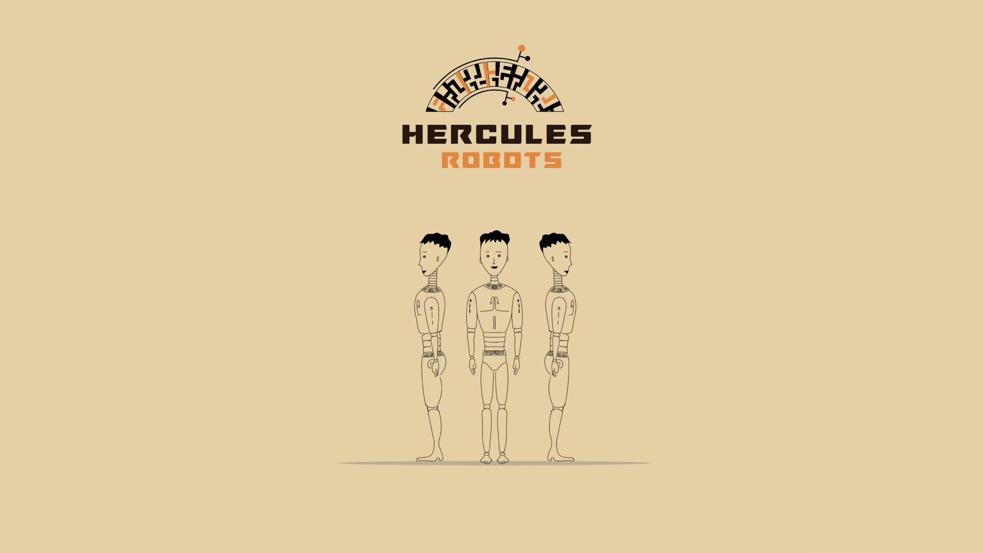 The logo of Hercules Robots combines the elements of Ancient Greek classical art with control symbolism reminiscent of a ships engine order telegraph.